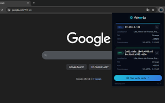 FckMyIP هو ملحق مجاني لمتصفح Chrome مصمم للمستخدمين الذين يرغبون في الوصول السريع إلى عنوان IP العام الخاص بهم ومعلومات الموقع الجغرافي ذات الصلة. يوفر هذا الملحق الخفيف كل من عناوين IPv4 و IPv6، بالإضافة إلى بيانات مفصلة مثل المدينة، المنطقة، الدولة، مزود خدمة الإنترنت (ISP)، ورقم النظام المستقل (ASN). المعلومات متاحة بسهولة من شريط الأدوات، مما يجعل من السهل على المستخدمين مراقبة تفاصيل شبكتهم دون عناء.